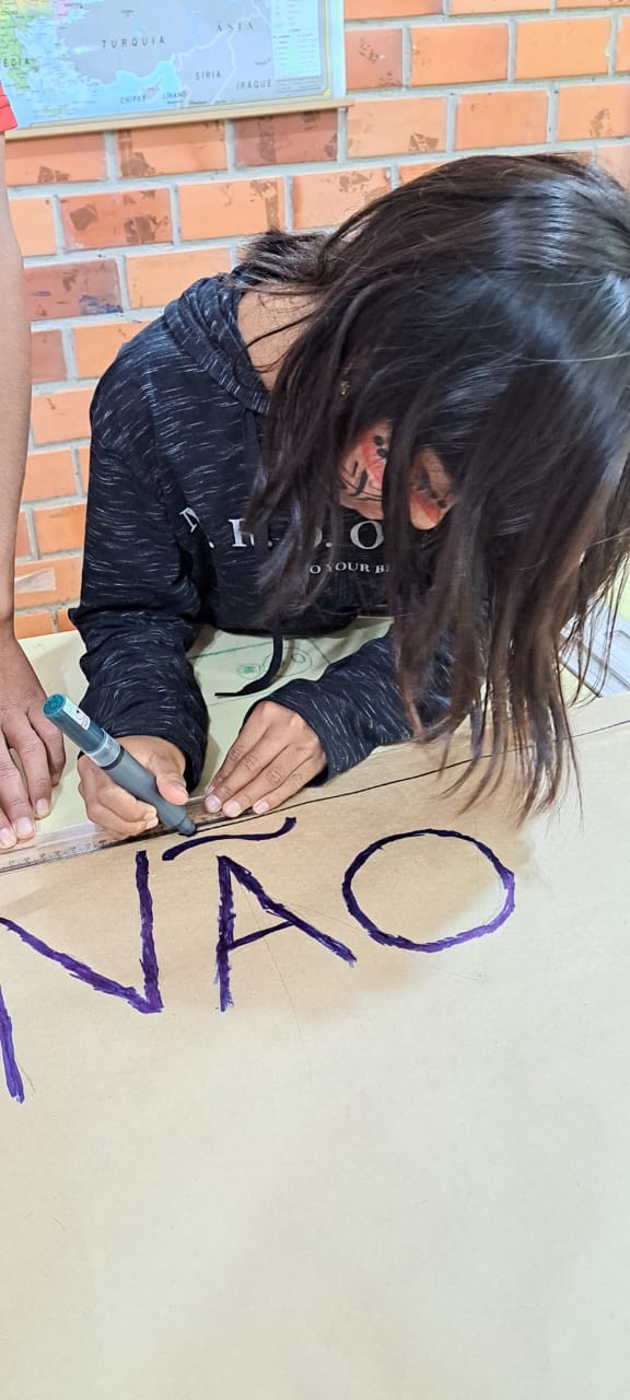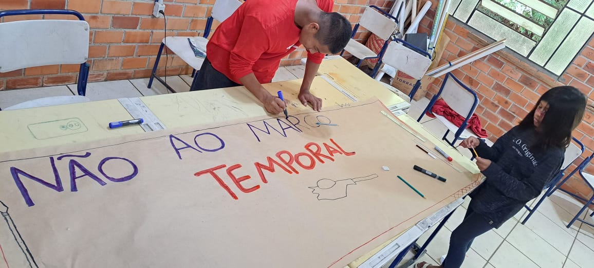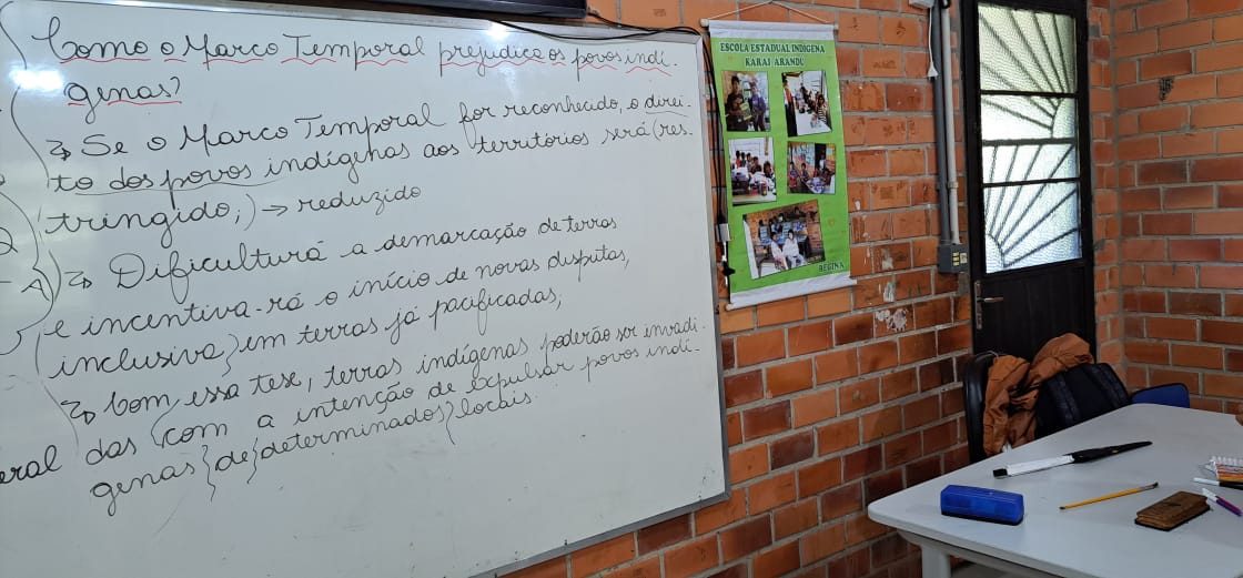 Na Tekoa Mbya Guarani Jatai’ty, de Cantagalo, Viamão/RS, houve atividades escolares e manifestações contra a tese do Marco Temporal nesta semana e pela defesa dos direitos originários dos Povos Indígenas do Brasil.