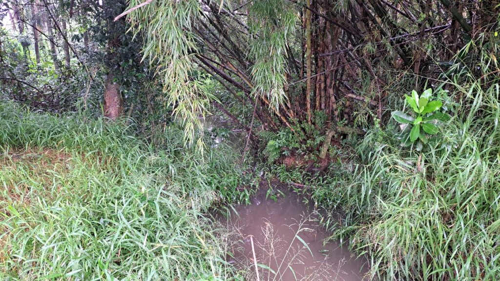Mesmo diante do reconhecimento oficial do território e da existência de ação judicial, a situação persiste. Registros fotográficos feitos durante a vistoria evidenciam o fluxo dos efluentes e os impactos diretos no território.
