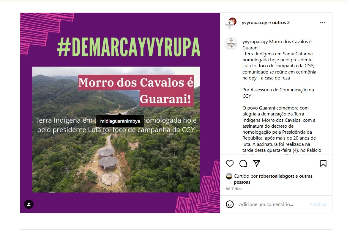 Luta dos povos indígenas e aliados garante homologação da TI Morro dos Cavalos e Toldo Imbu, em Santa Catarina
