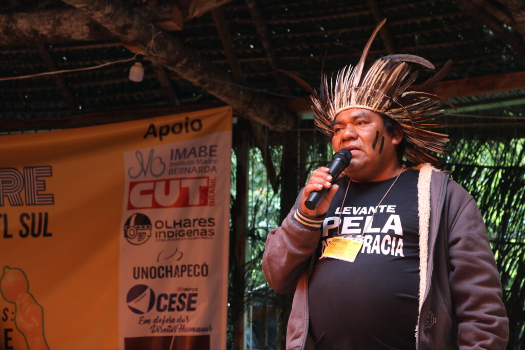 Brasílio Priprá, liderança do povo Xokleng de Santa Catarina, falou sobre a conjuntura difícil no Brasil e destacou a necessidade de dialogar mais com a juventude indígena e buscar construir formas de barrar o projeto do capital. “Tenho 64 anos, vivi na época dos militares, agora está afunilando, precisamos com mais experiência mostrar para os jovens o que era no passado e o que está piorando. Convido essas lideranças de todo Brasil, que batalham pelos direitos indígenas, para conversar com esses jovens para cuidar, olhar quem é quem para votar. Podemos nos ajudar dentro do voto, temos que buscar nosso direito, não entregar nosso direito de futuro para outras pessoas”.