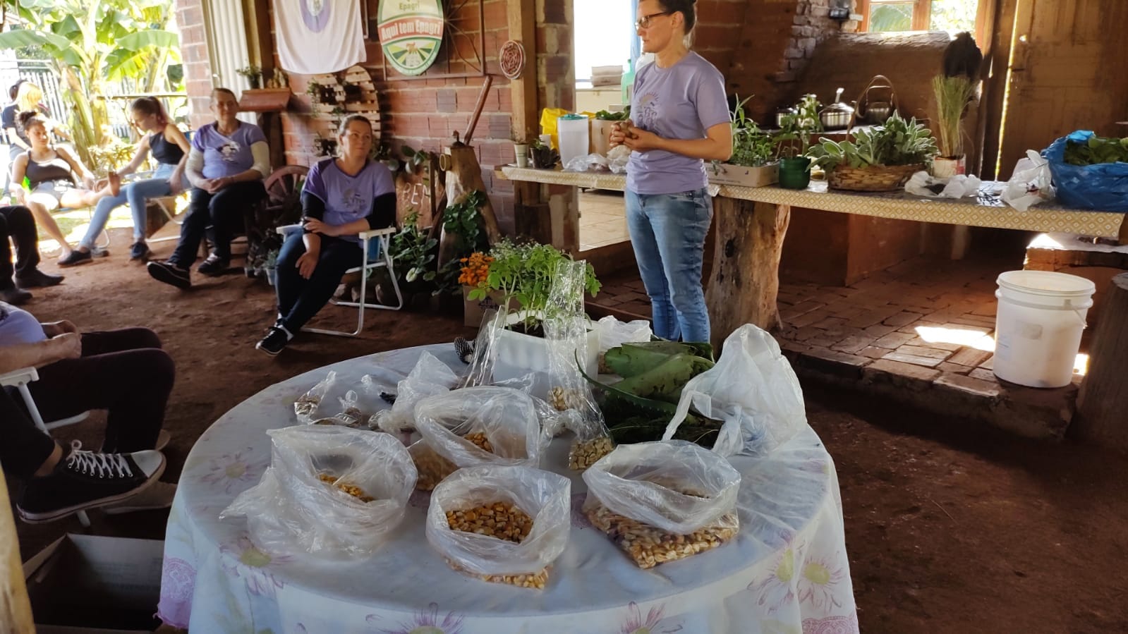 As mulheres camponesas, essas que com toda sabedoria popular, de respeito à terra, guardiãs das sementes crioulas e de compromisso com a biodiversidade, constroem em um processo coletivo de organização de base, seu modo de produção que considera a defesa da vida em primeiro lugar, da natureza enquanto sujeito de direito, das pessoas, dos animais, de todos os elementos que compõe o ecossistema. Por isso, conforme Noeli, uma das lutas neste momento é pelo fortalecimento dos quintais produtivos, esse sistema amplo que dialoga com o bem-viver, com o espaço casa, com os arredores, com as hortas, pomares, jardins, horto medicinal, animais de pequeno porte e outras possibilidades de produção.