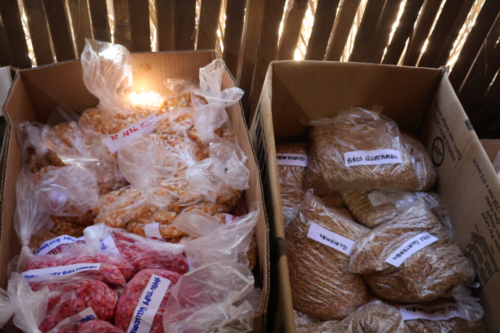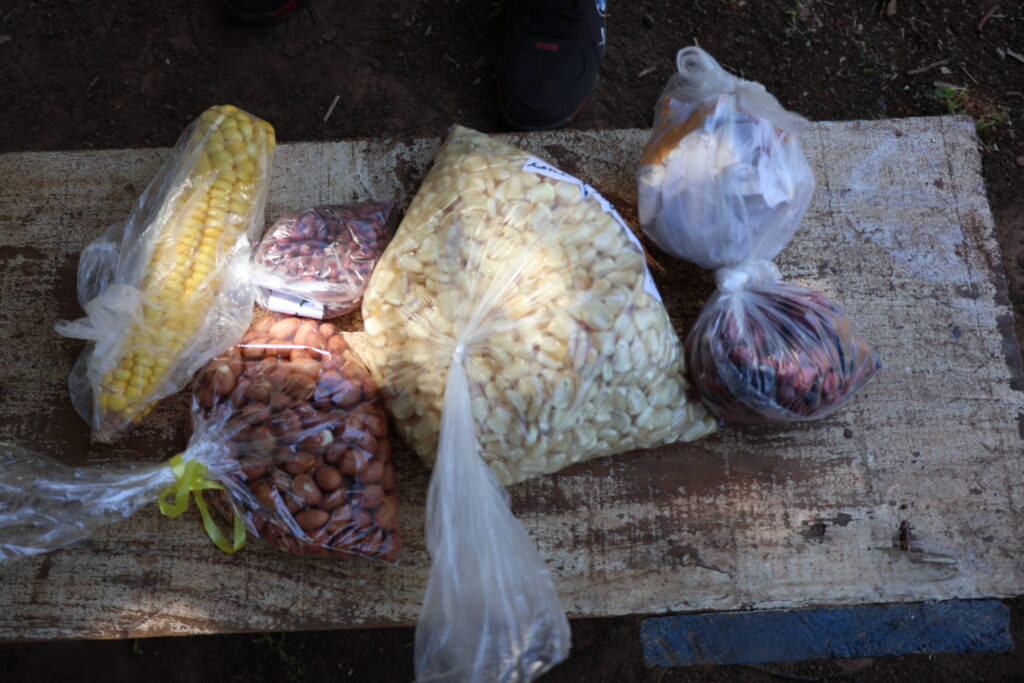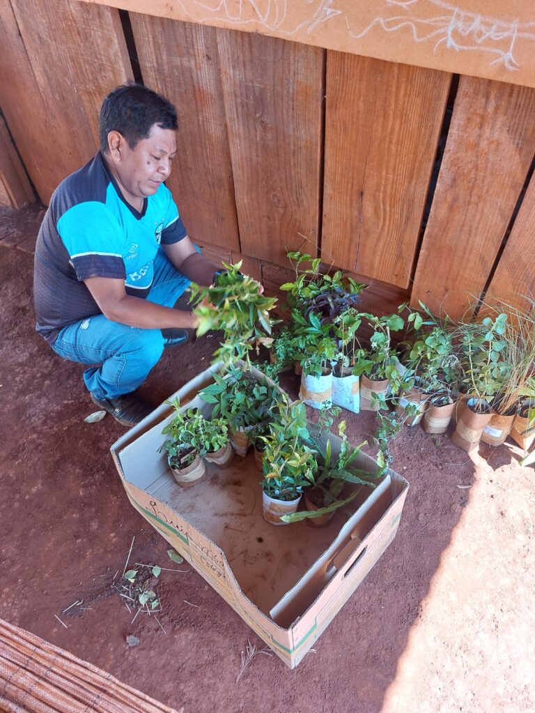 Daniel, a liderança que mencionamos lá no início desta reportagem, e que vive na Tekoha Ocoy, em São Miguel do Iguaçu, é quem passa as informações sobre a horta que surgiu no território a partir de uma oficina com jovens indígenas e ali se debateu a produção de mais alimentos para a comunidade, além de remédios. “Tivemos a ideia de cercar pequenos espaços e plantar variedades de sementes para a comunidade”, disse.