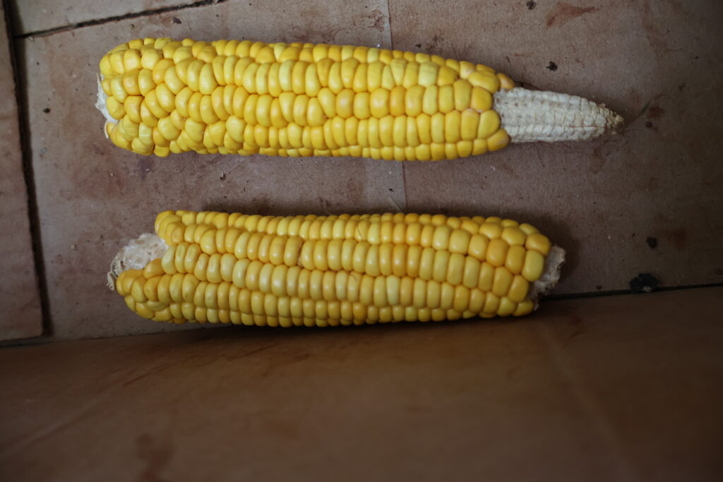 O milho crioulo já cresce na pequena horta. Foto: Daniel Maraca Miri Lopes.